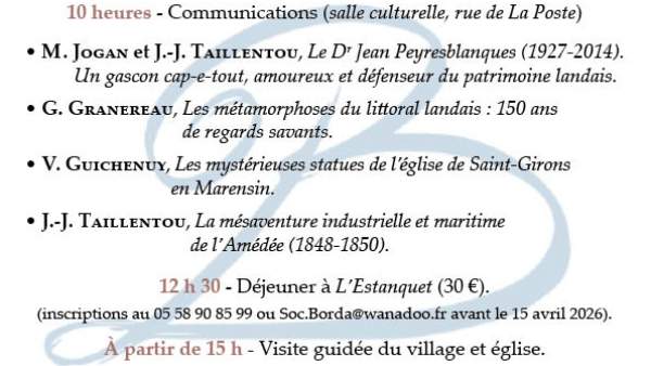 Des conférences sur le Marensin (matinée) et une visite guidée du village et de l'Église (l'après-midi).