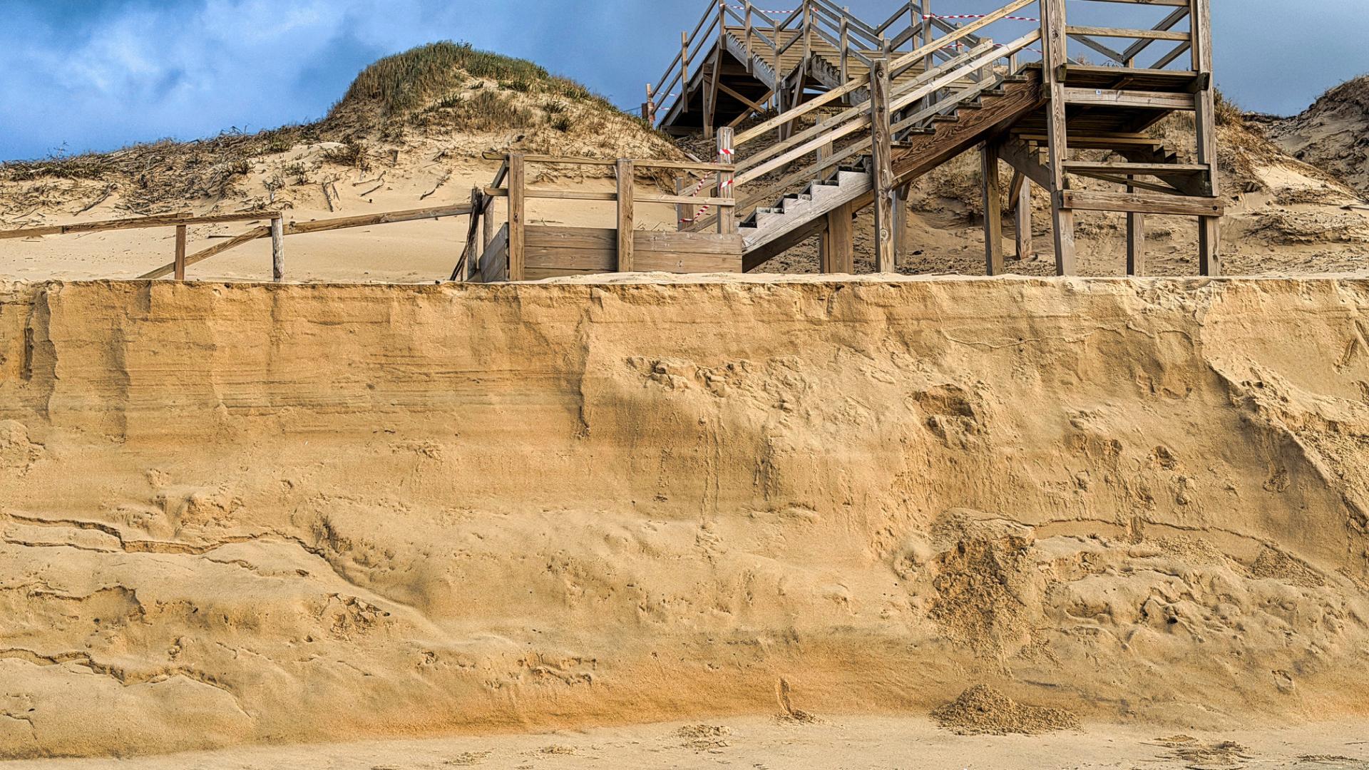 Depuis le 8 février 2026 et jusqu'à nouvel ordre, l'accès à la plage et sa remontée sont impossibles par l'escalier Nord du fait d'une entaille d'érosion dunaire.